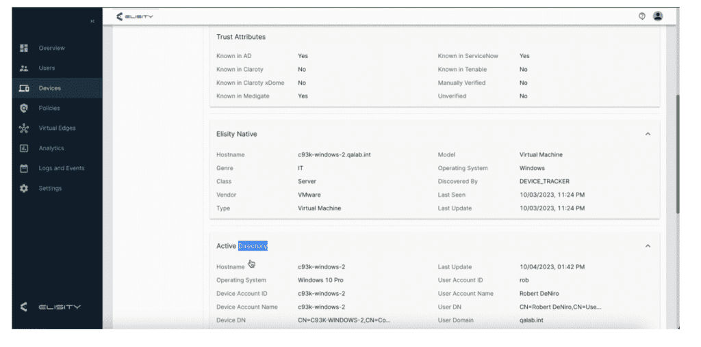 - Active Directory update and changes. Devices are no longer imported from AD. Instead, AD now provides enriched device attributes and a trust attribute, as above.
