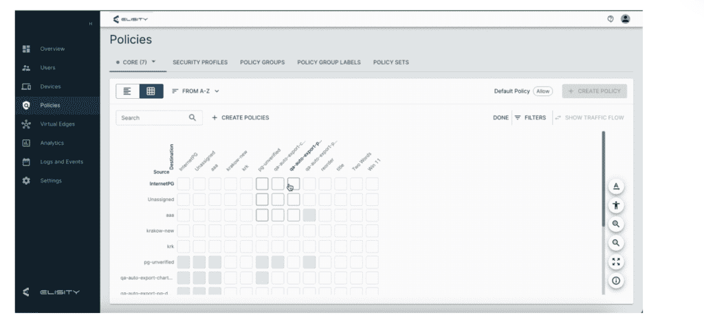 As noted in prior blogs, the Elisity traffic matrix helps visualize traffic to/from known assets and helps understand the potential or actual impact of policies.