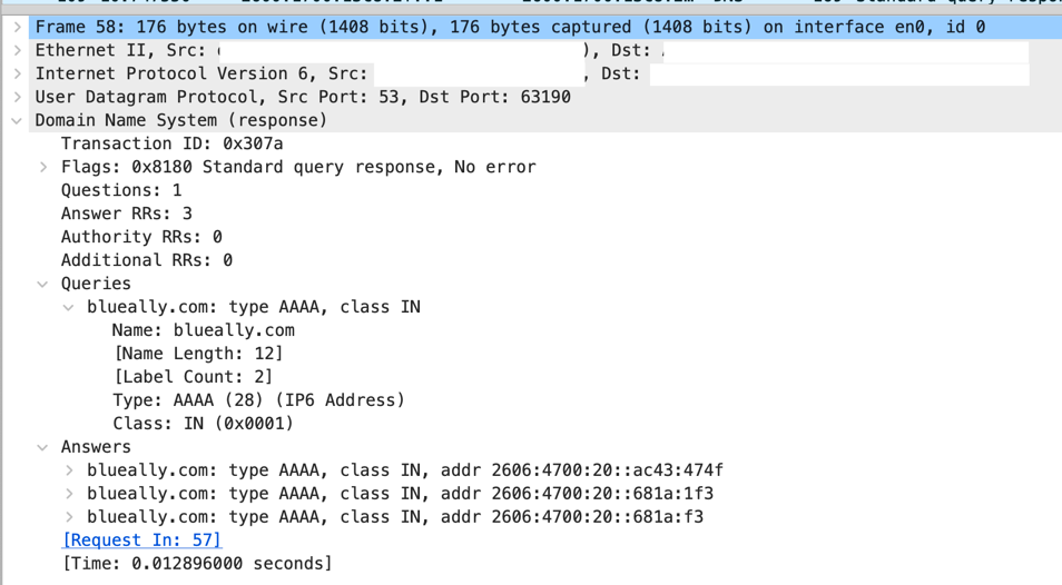 The A or “address” record is the workhorse of DNS, it’s the primary record by which hosts on the internet translate a human readable domain name to an IP address. Since IPv6 addresses are four times larger than a 32-bit IPv4 address, this new record meant to translate domain names into IPv6 addresses is called an AAAA record. For those wondering, it’s generally verbally called “quad A.”.